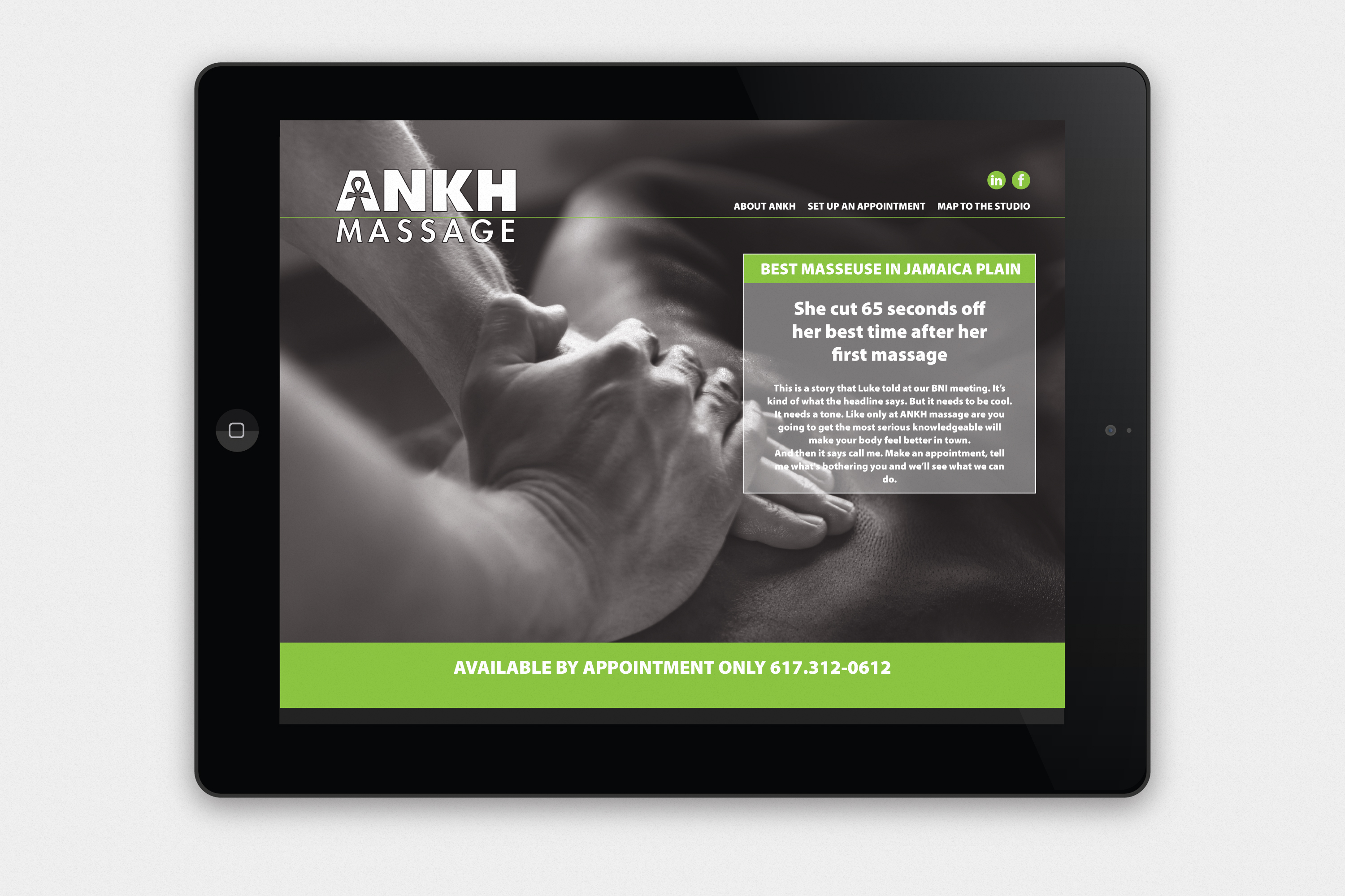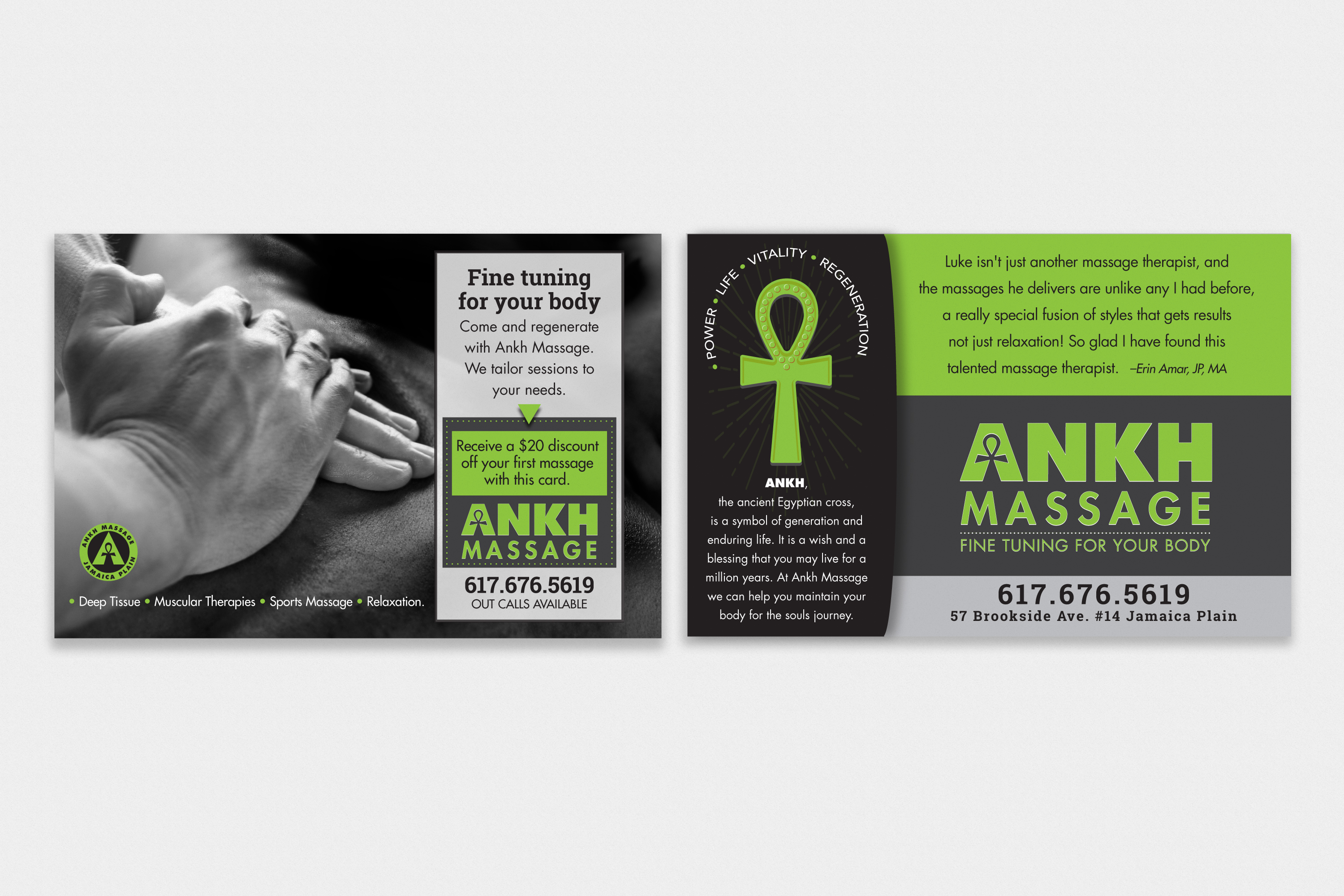 We created a new logo that emphasized the massage business. We tried to illustrate the fact that Ankh massage was a massage therapist and not a spiritual something